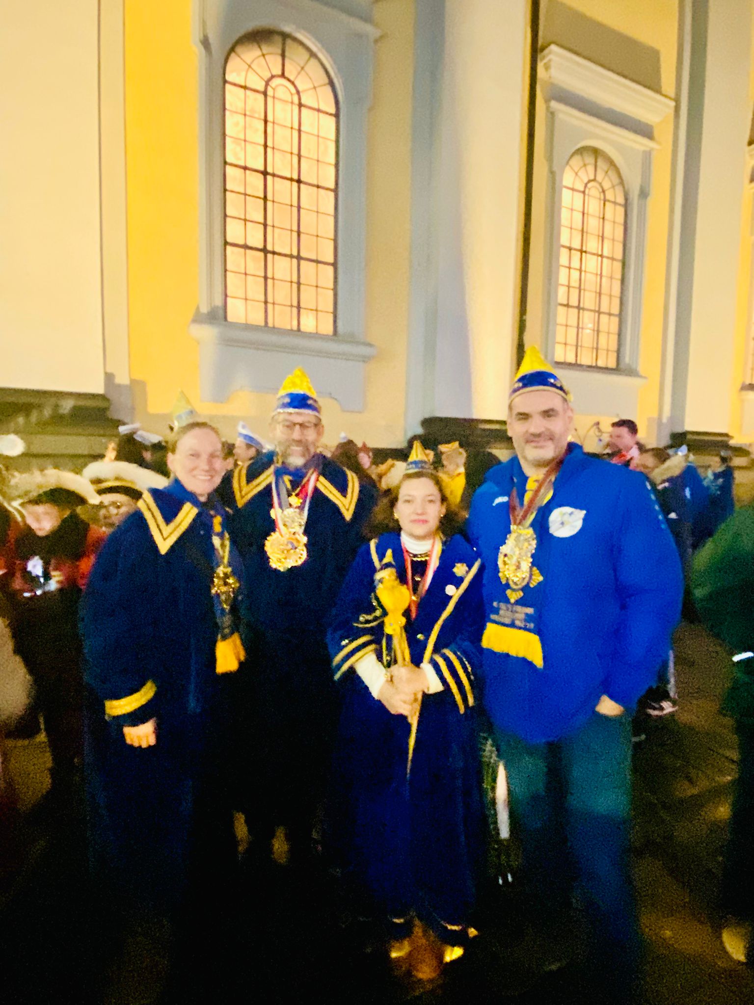 Auch für Till’s Freunde war dieser Abend ein besonderer Abschluss einer intensiven Session. Gemeinsam mit dem Kinderprinzenpaar Alexandros I. und Venetia Ioli erlebte der Verein den Närrischen Zapfenstreich aus nächster Nähe.