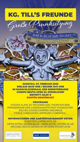 « Alle Veranstaltungen Prunksitzung 2026 7. Februar 2026 @ 19:11 « Große Gala Prunksitzung + zu Google Kalender hinzufügen+ Exportiere iCal Details Datum: 7. Februar 2026 Zeit: 19:11 Veranstaltungsort Rheinterrasse Radschlägersaal